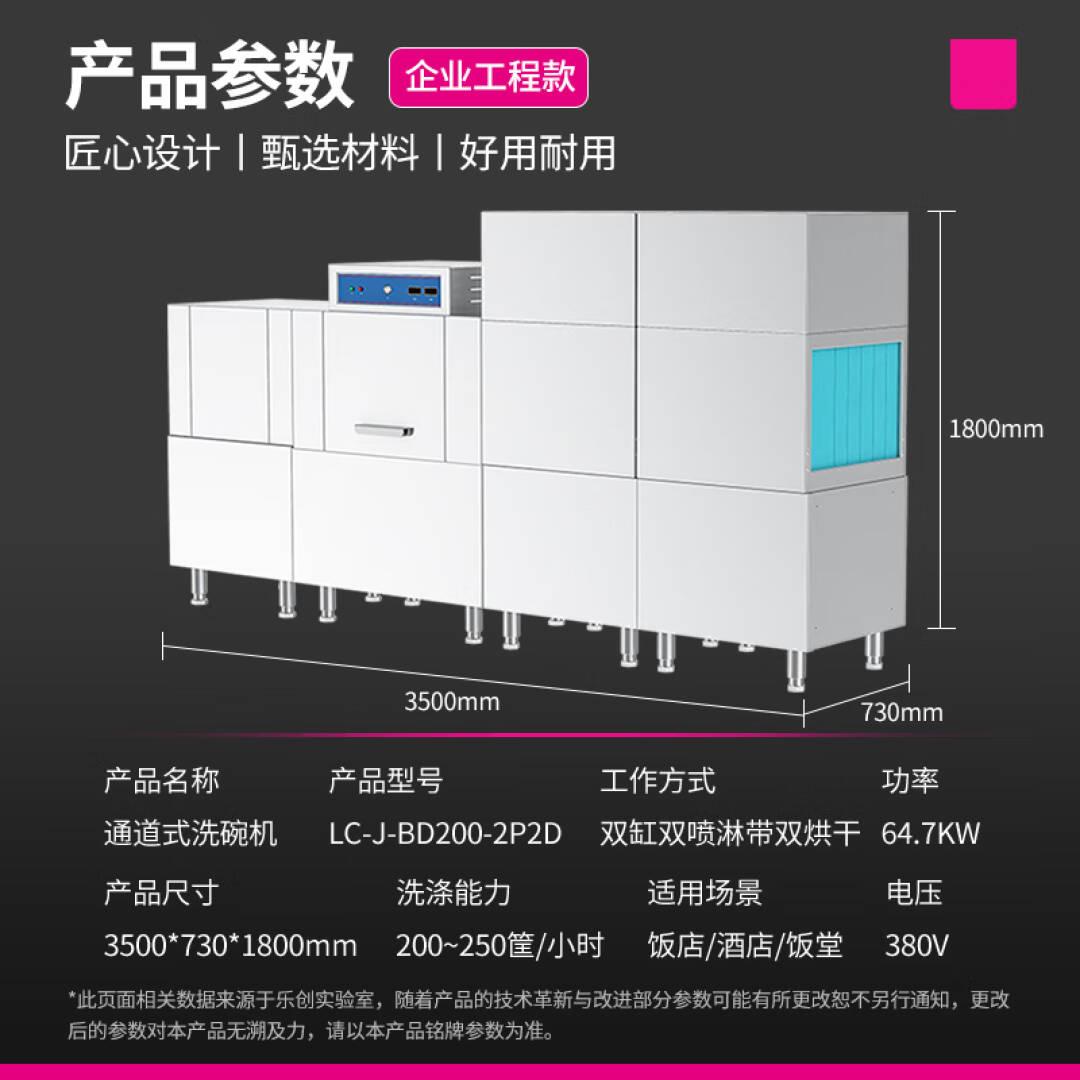 乐创(lecon)商用洗碗机通道式自动化大型酒店食堂刷碗机 双缸双喷淋带双烘干 LC-J-BD200-2P2D 单位:台