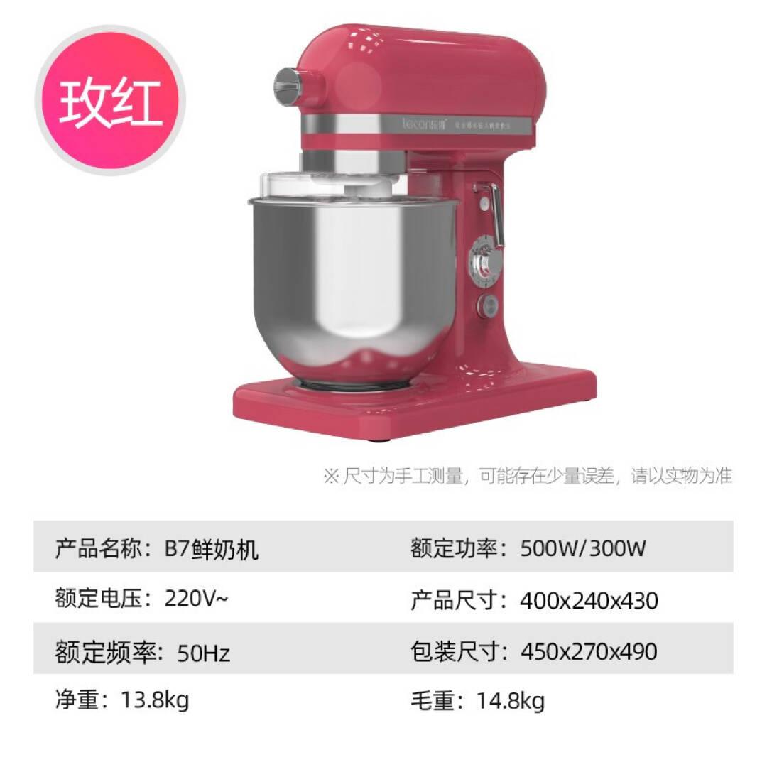 乐创(lecon)和面机商用多功能自动料理打蛋机鲜奶机搅拌机揉面机厨师机 7升标配300W玫红色款B7