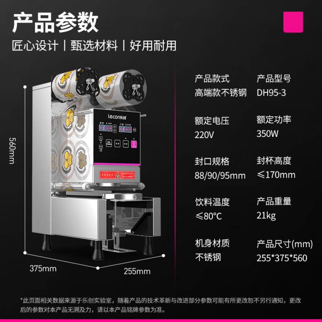 乐创(lecon)奶茶封口机全自动封口机商用塑料杯纸杯饮料豆浆封杯机 高端款(不锈钢)DH95-3