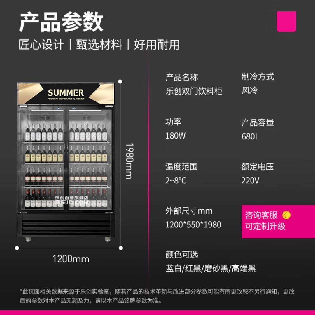 乐创(lecon)680升冷藏展示柜 保鲜饮料冷柜超市冰柜冷饮陈列柜立式商用冰箱 LC-ZSG02