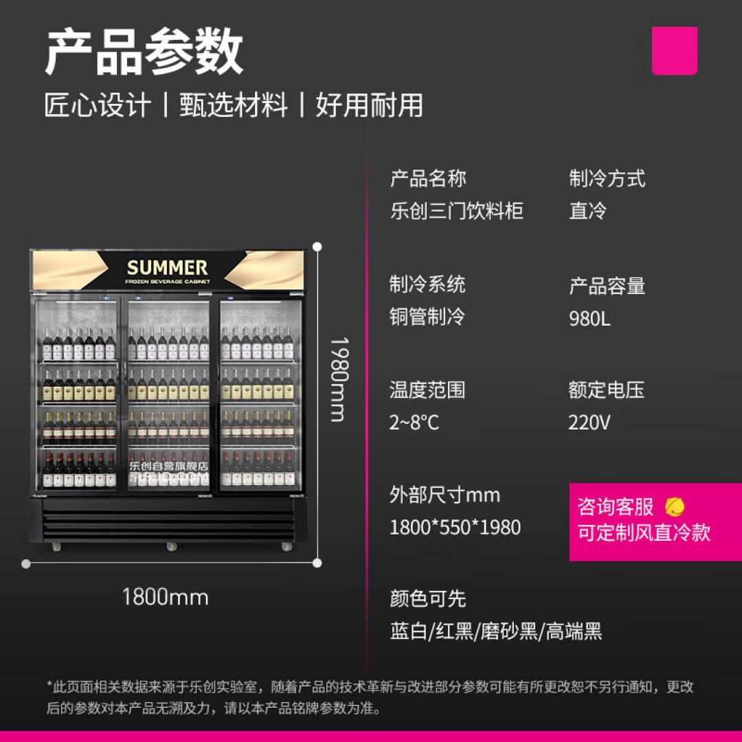 乐创(lecon)980升冷藏展示柜 保鲜饮料冷柜超市冰柜冷饮陈列柜立式商用冰箱 LC-ZSG02