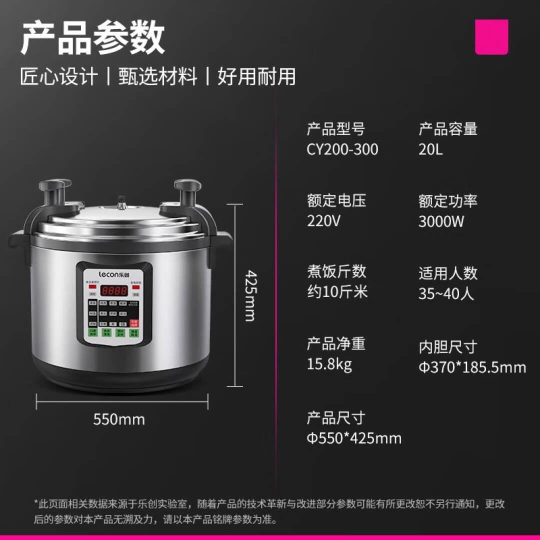乐创 lecon商用电压力锅 电饭锅商用大容量特大号20L升食堂饭店高压电饭煲30-35人适用 CY200-300
