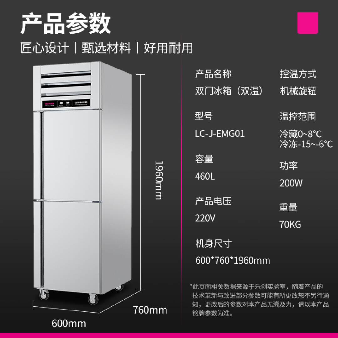 乐创(lecon)商用双门冰柜 立式厨房保鲜柜节能压缩机 工程豪华款双温 LC-J-EMG01【一价无忧】 单位:台