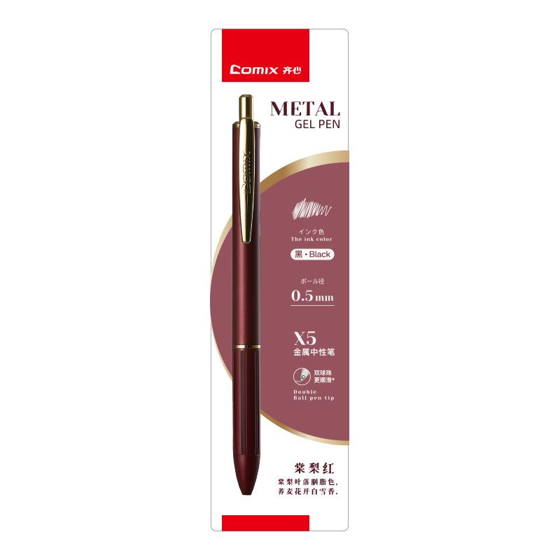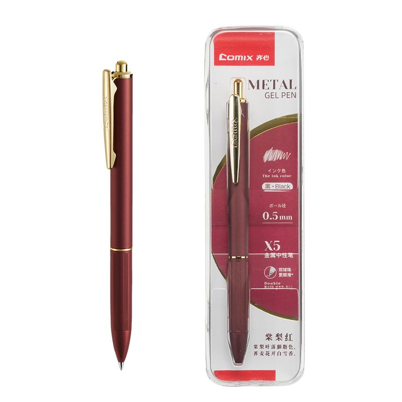 > 齐心 X5 金属按动中性笔 子弹头 0.5mm 黑 红色笔杆 单位:支