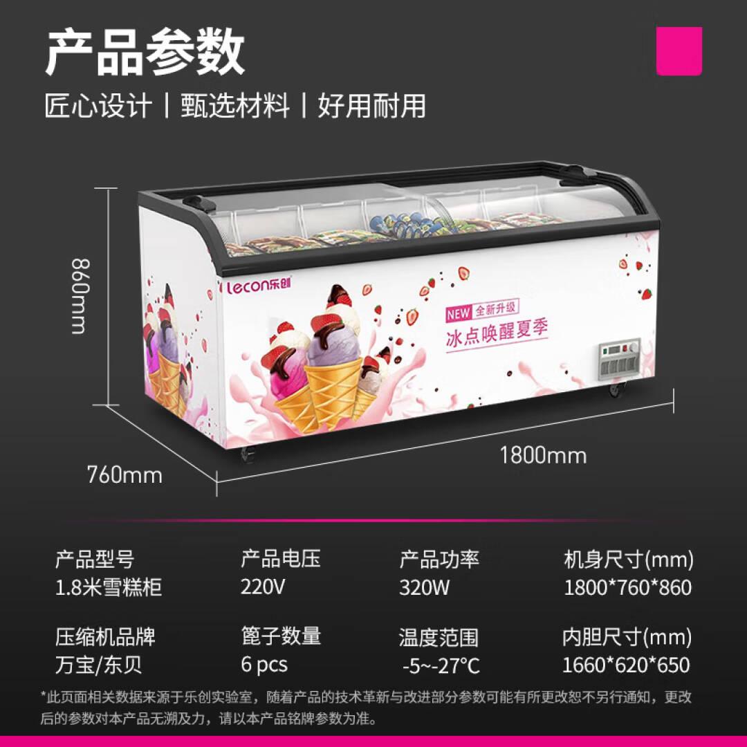 乐创(lecon)670升 雪糕柜商用 大容量弧形推拉玻璃门卧式冷冻展示柜XGG1.8