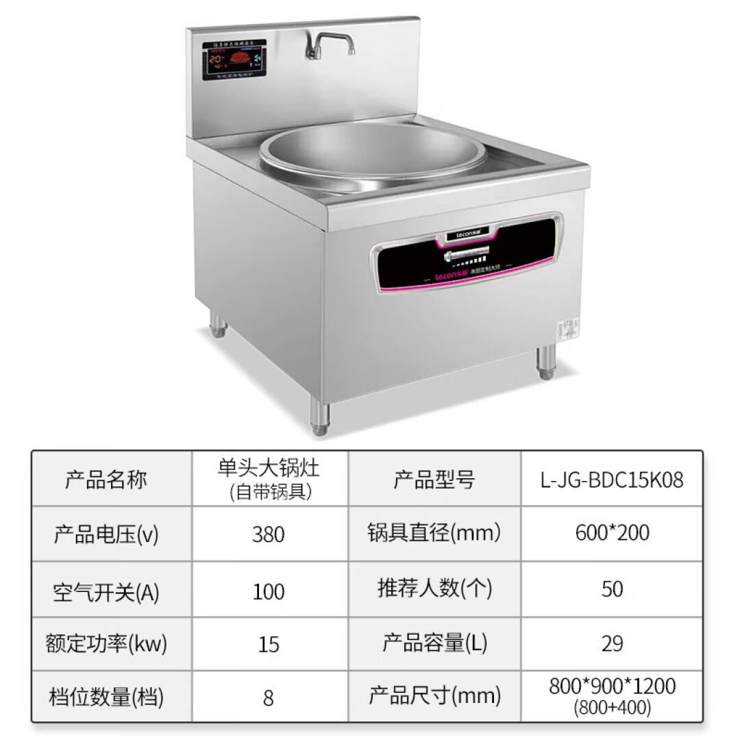 乐创(lecon)商用电磁单头大锅灶 锅径600 15KW大功率酒店饭堂电磁灶 L-JG-BDC15K08【一价无忧】