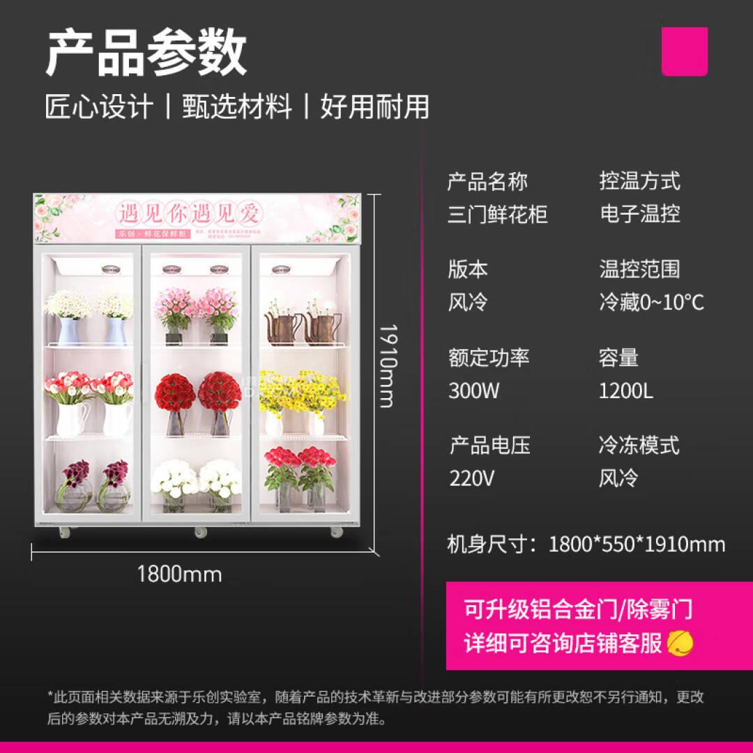 乐创(lecon)鲜花保鲜柜 风冷展示柜冷藏柜花店市场鲜花植物陈列柜 LC-ZSG三门铝合金门