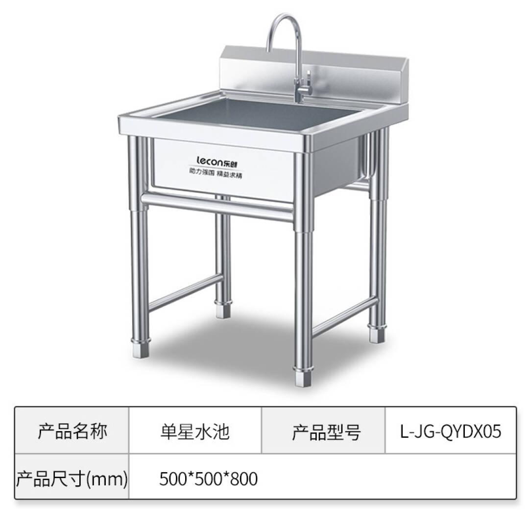 乐创(lecon)商用单星水池 厨房不锈钢水池 单星201不锈钢 500*500*800mm L-JG-QYDX05【一价无忧】