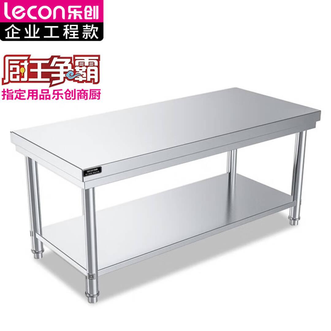 乐创(lecon)商用简易工作台 厨房操作台置物架 双层201不锈钢 1800*800*800mm L-JG-QYS188【一价无忧】