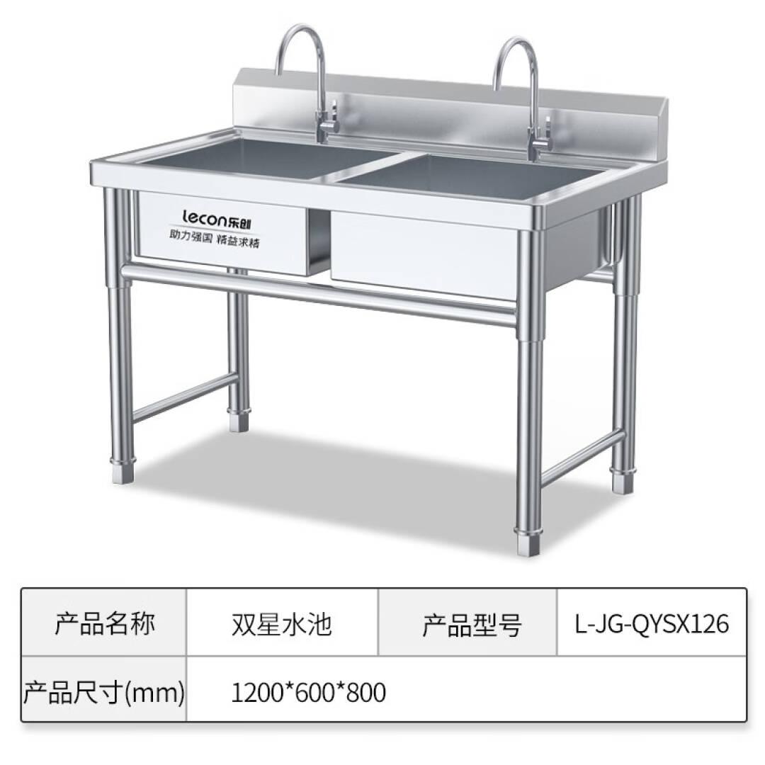 乐创(lecon)商用双星水池 厨房不锈钢水池 双星201不锈钢 1200*600*800mm L-JG-QYSX126【一价无忧】