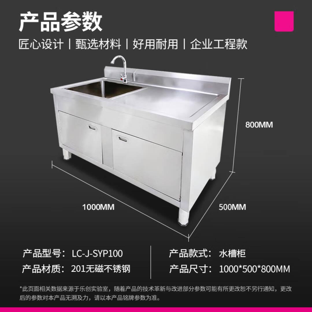 乐创(lecon)商用水池柜 201不锈钢水池柜子一体式 1000*500*800mm 右平台特厚豪华款 LC-J-SYP100【一价无忧】