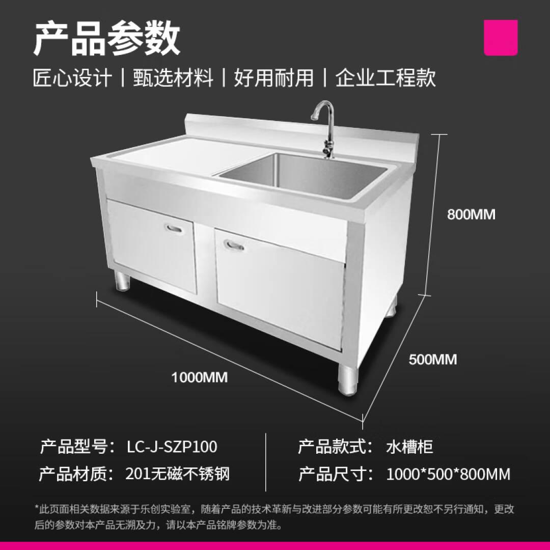 乐创(lecon)商用水池柜 201不锈钢水池柜子一体式 1000*500*800mm 左平台特厚豪华款 LC-J-SZP100【一价无忧】
