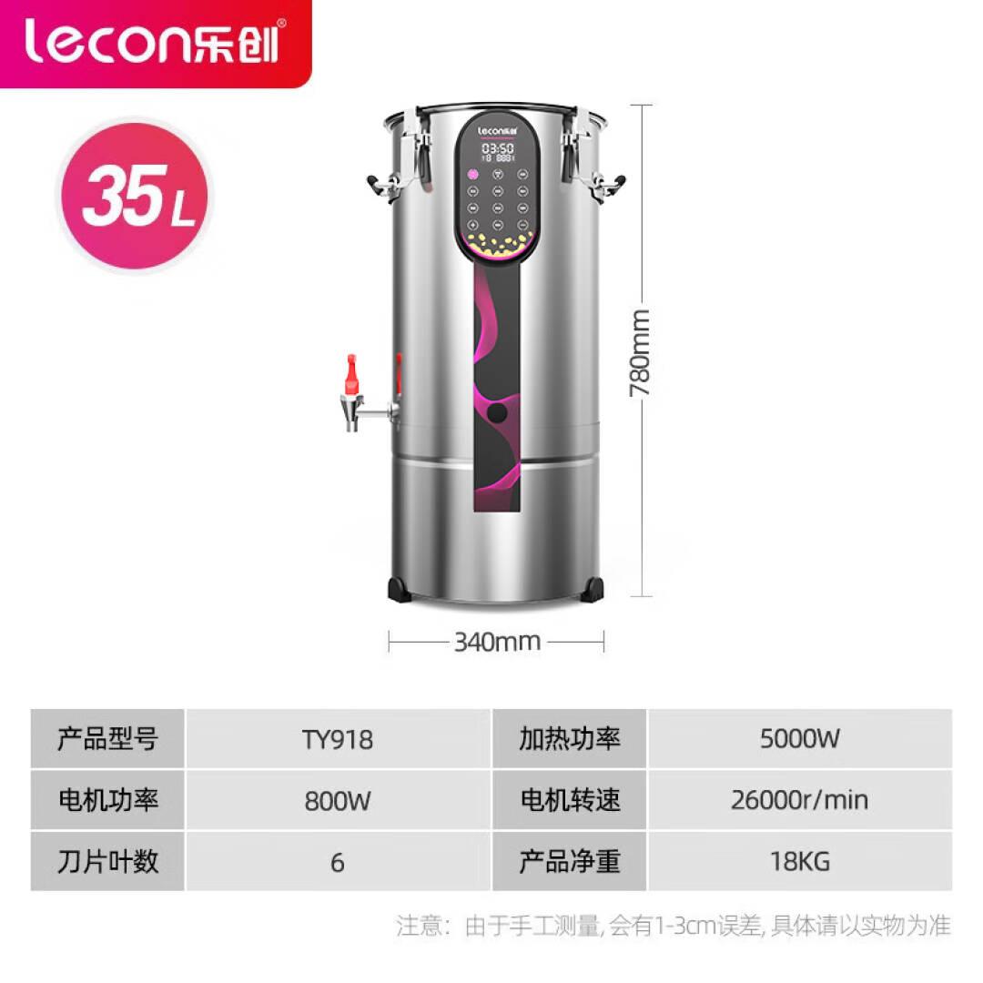乐创(lecon)豆浆机商用全自动免过滤智能面板加热预约现磨早餐食堂酒店饭堂专用磨浆机 35L TY918