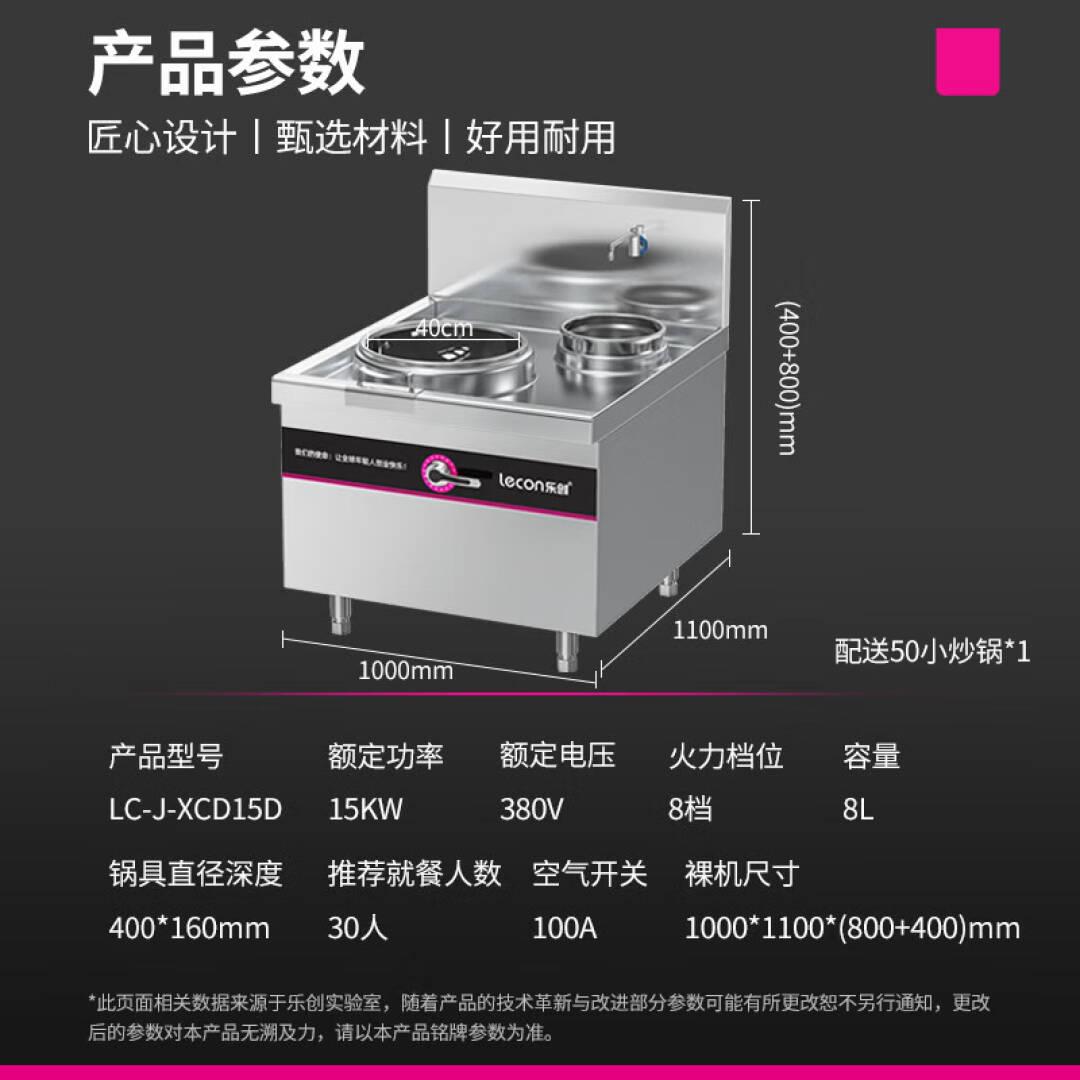 乐创(lecon)商用单头单尾小炒灶 15KW酒店饭堂企业电磁灶 LC-J-XCD15D【一价无忧】 单位:台