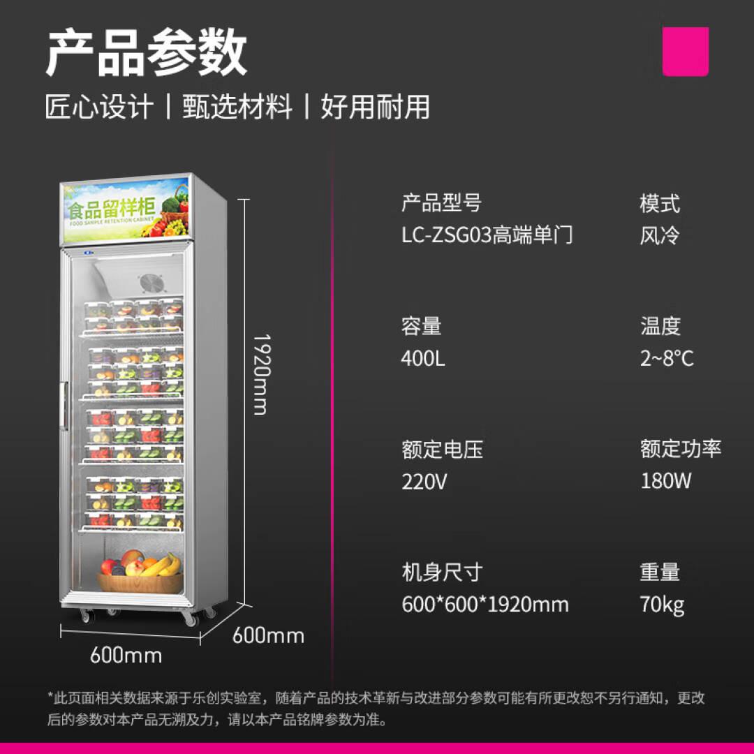 乐创(lecon)食品留样柜幼儿园食堂用学校公司冷藏柜蔬菜保鲜铝合金门单门400L带锁LC-ZSG03