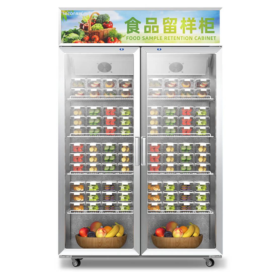 乐创(lecon)食品留样柜幼儿园食堂用学校公司冷藏柜蔬菜保鲜铝合金门双门800升带锁LC-ZSG03