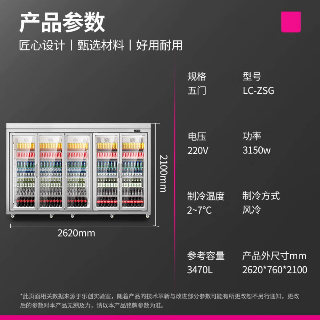 乐创(lecon)饮料柜展示柜冷藏保鲜柜商用啤酒柜超市便利店立式冰箱冰柜冷柜分体机风冷五门平头款LC-ZSG