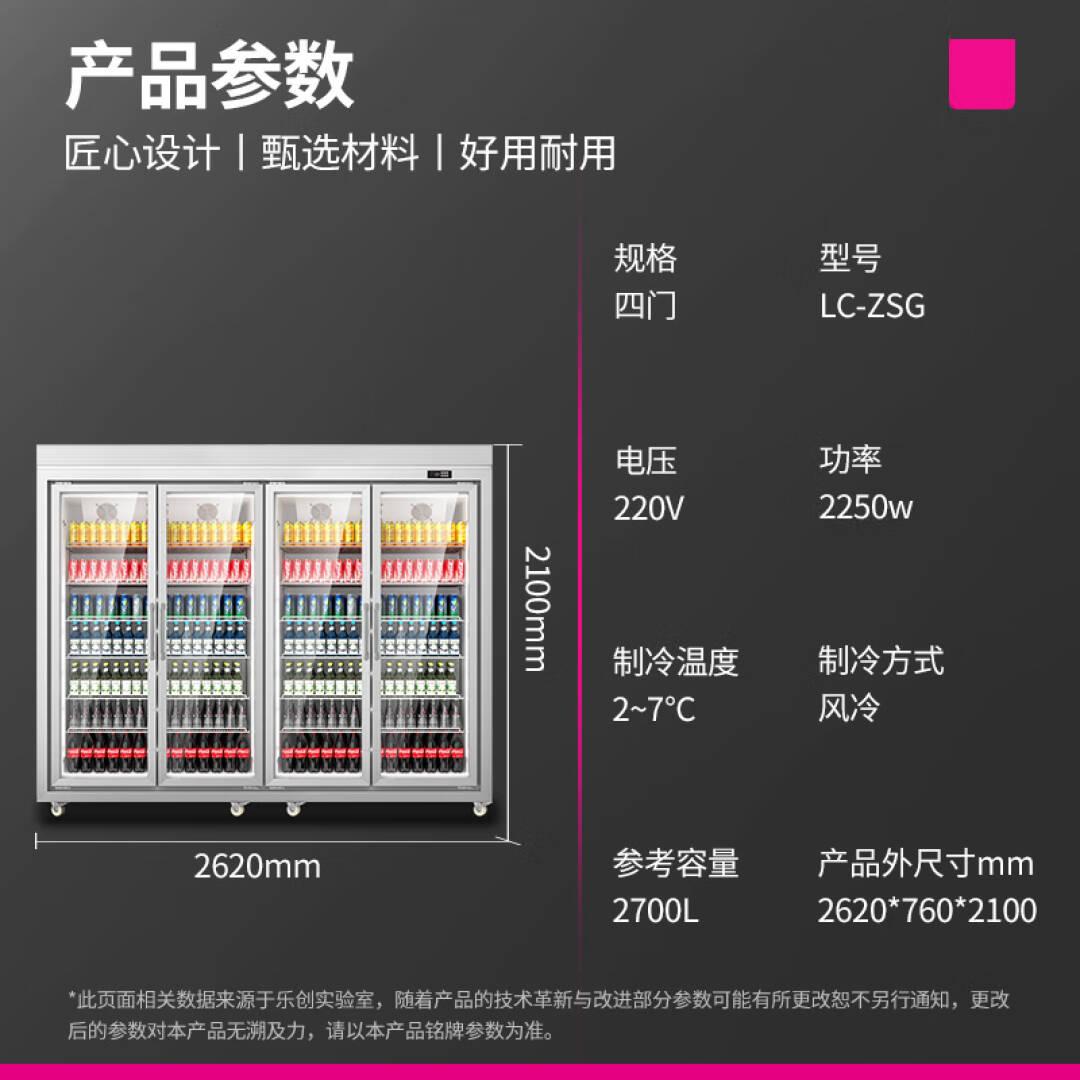 乐创(lecon)饮料柜展示柜冷藏保鲜柜商用啤酒柜超市便利店立式冰箱冰柜冷柜分体机风冷四门平头款LC-ZSG