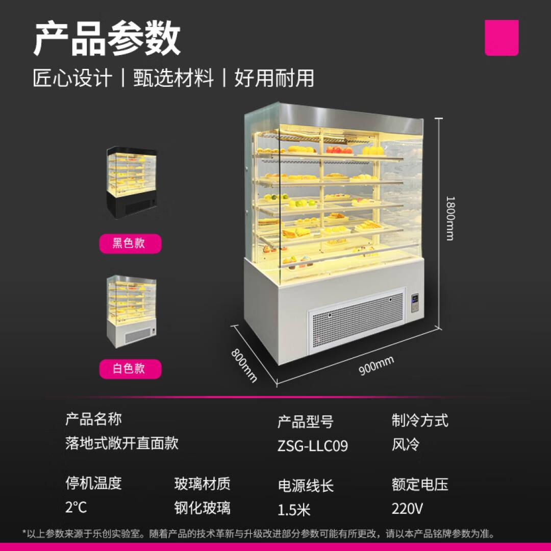 乐创(lecon)蛋糕柜展示柜水果饮料保鲜冷藏风冷无霜除雾玻璃 0.9米立式落地敞开款直角玻璃ZSG-LLC09