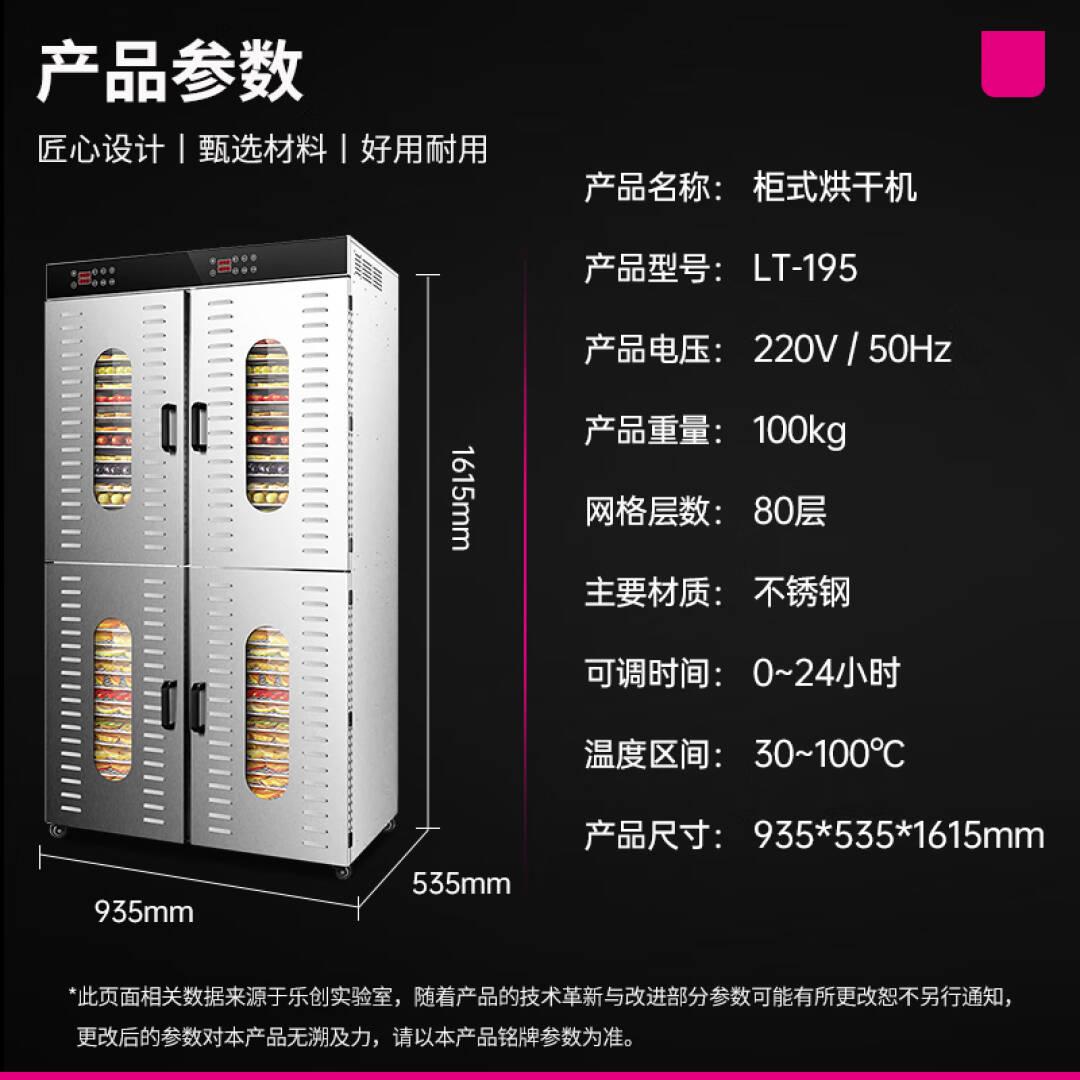 乐创(lecon)干果机商用食品烘干机水果蔬菜药材宠物零食肉干腊肉大型风干机立式80层 烘干机食品干果机 LT-195