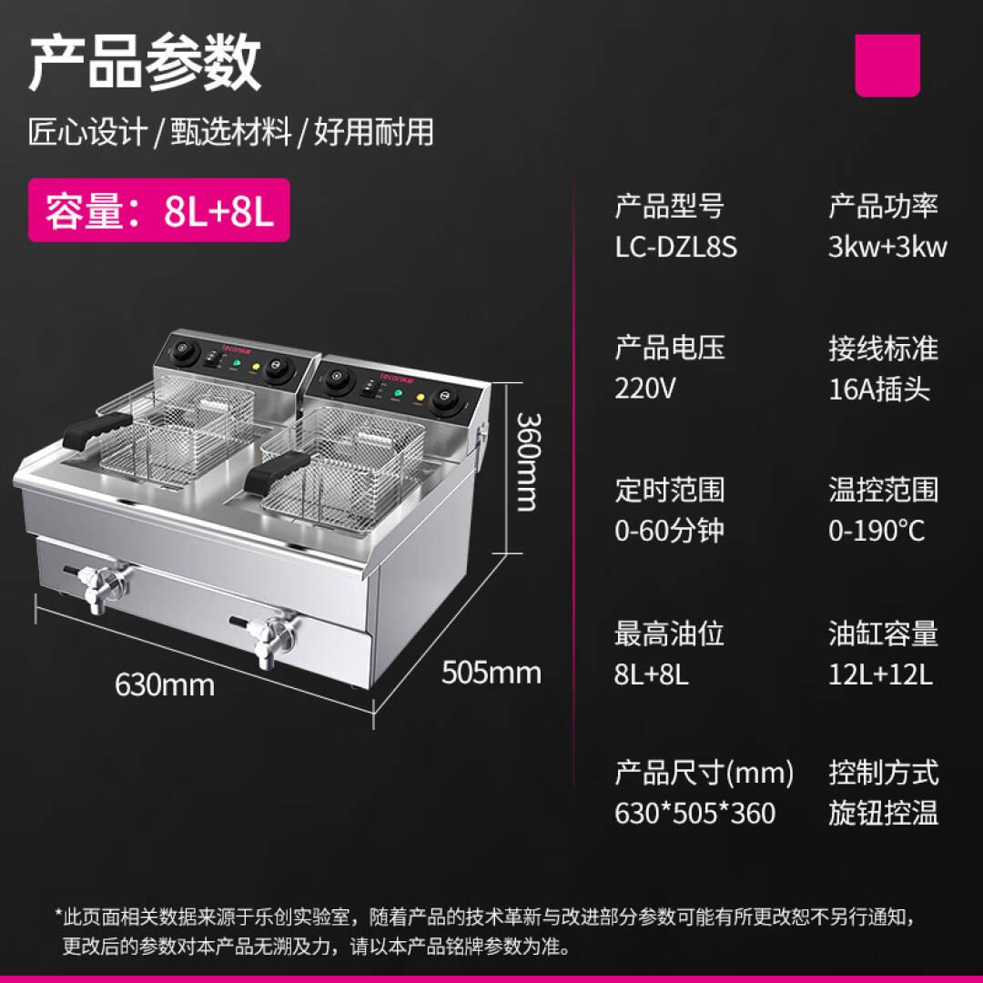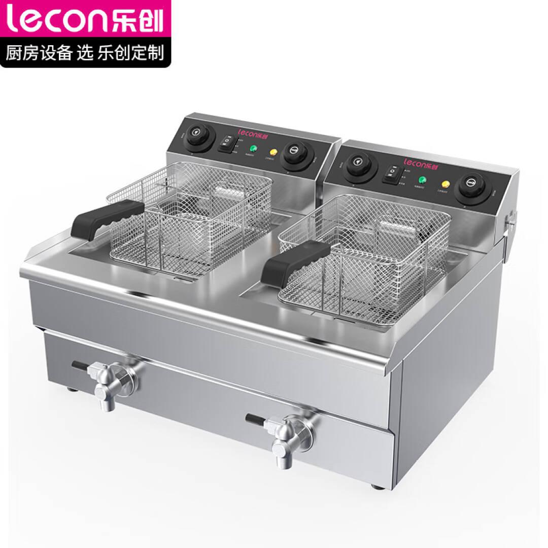 乐创(lecon)电炸炉商用双缸定时大容量油炸锅薯条油条电炸锅16升双缸带阀门电炸炉LC-DZL08S