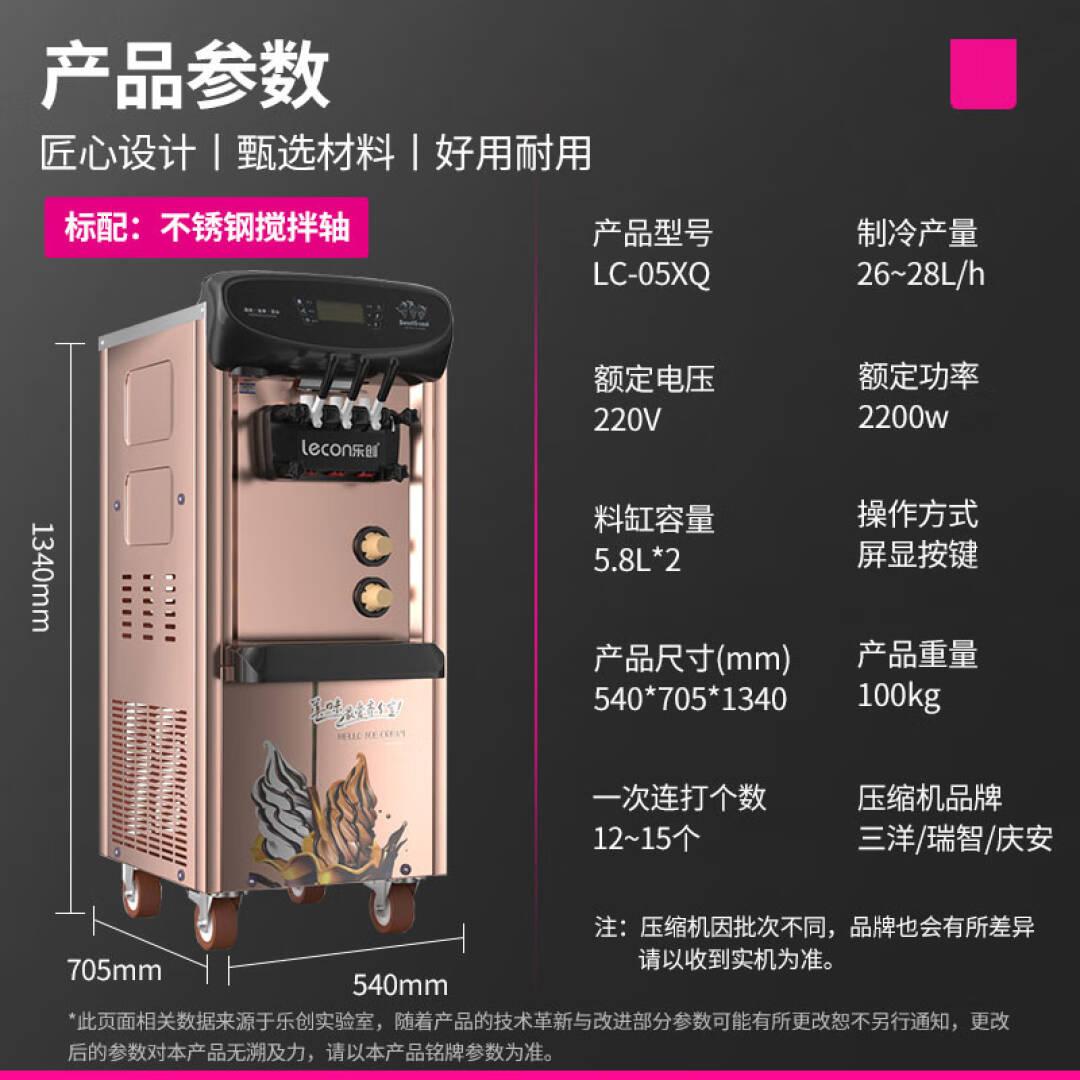 乐创(lecon)冰淇淋机商用全自动软冰激凌机雪糕机甜筒机立式圣代机玫瑰金色 LC-05XQ