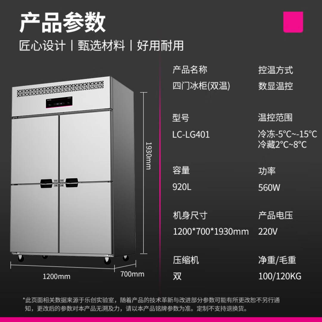 乐创(lecon)四门冰箱商用厨房冰柜大容量双温冷冻柜 餐厅后厨酒店饭店 不锈钢机身 LC-LG401