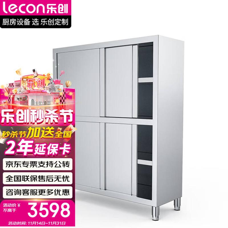 乐创(lecon)商用碗柜201不锈钢四门储物柜厨房移动门后厨食品保洁橱柜1.2*0.5*1.8米 LC-CWG12