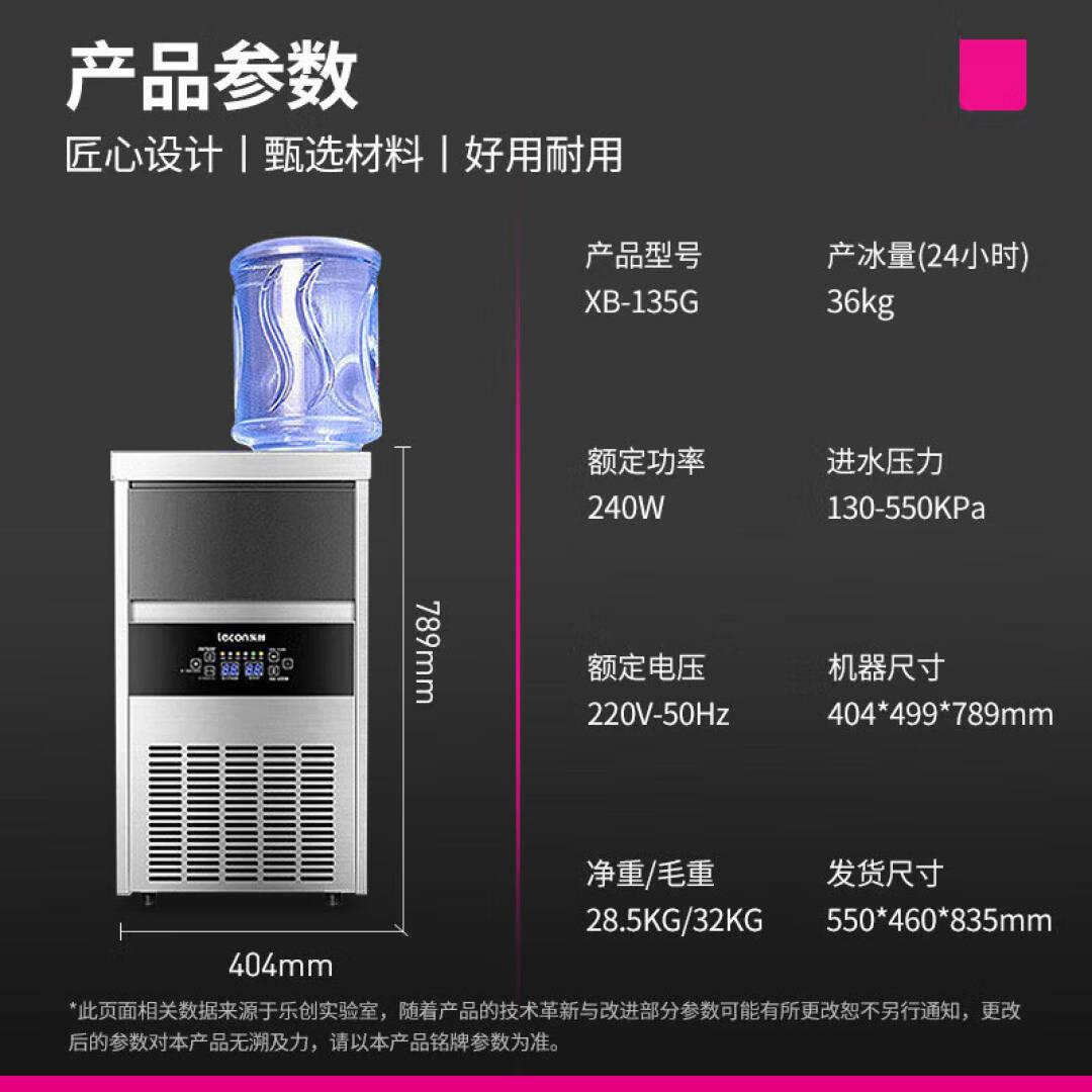 乐创(lecon)制冰机商用奶茶店大型冰块机方冰50大冰格商用制冰机 50冰格 日产量36KG 自来水/桶装水 XB-135G