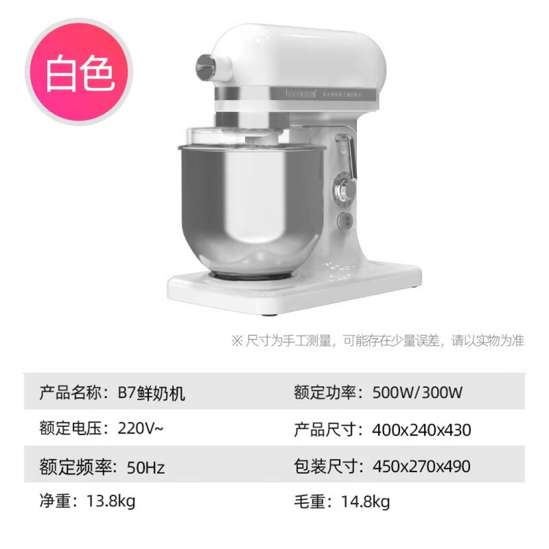 乐创(lecon)和面机商用多功能自动料理打蛋机鲜奶机搅拌机揉面机厨师机 7升标配300W白色款B7