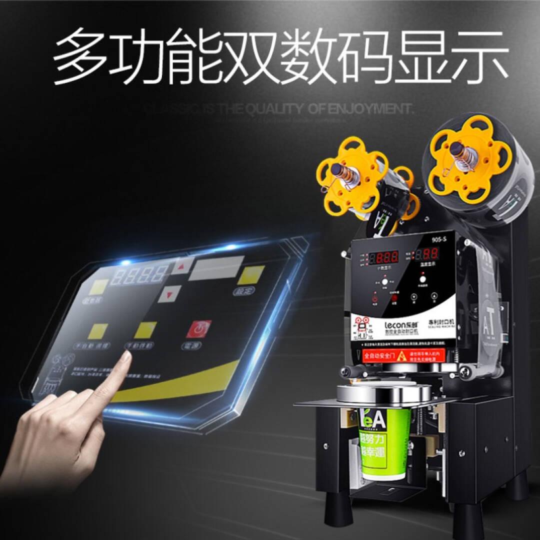 乐创( lecon)全自动奶茶商用封口机 饮料封口机纸杯封杯机豆浆 奶茶店设备 白色款
