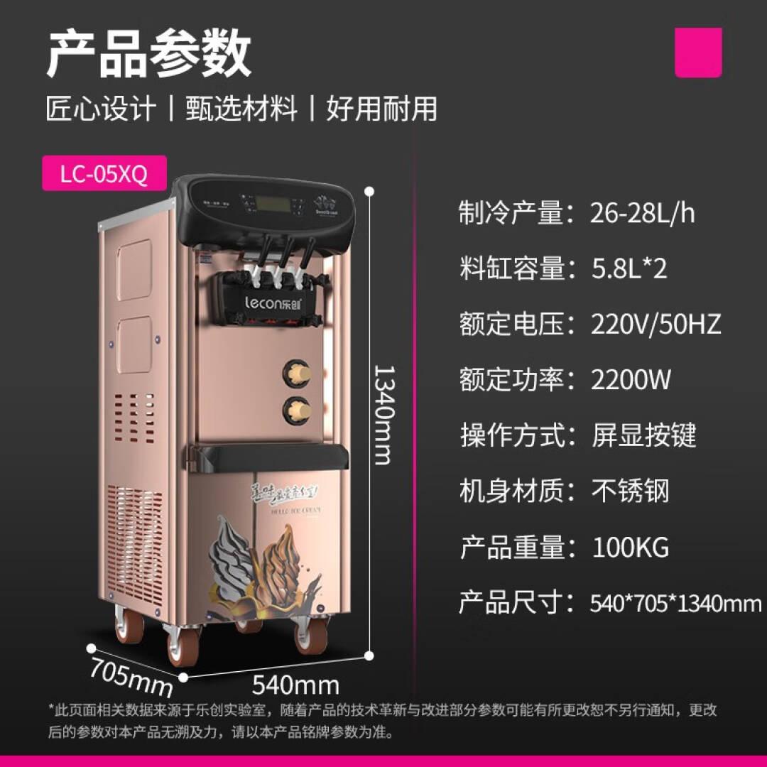 乐创 lecon冰淇淋机商用双压缩机预冷保鲜7天免清洗软冰激凌雪糕甜筒立式圣代机金色