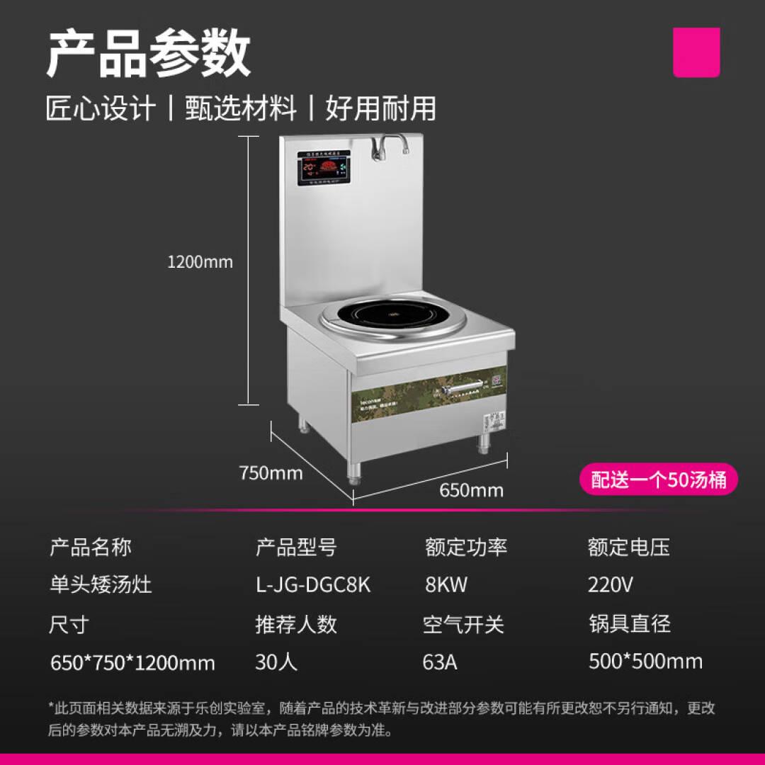 乐创(lecon)商用电磁单头矮汤灶 8KW大功率酒店饭堂电磁灶 L-JG-DGC8K【一价无忧】