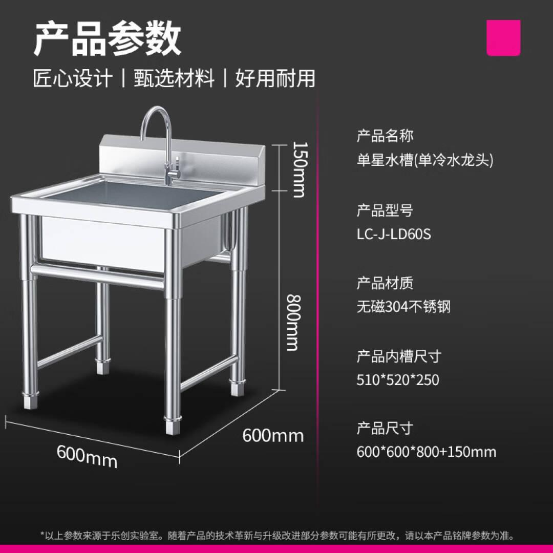 乐创(lecon)商用单星水池 304不锈钢洗碗洗菜池洗手盆 冷水龙 LC-J-LD60【一价无忧】