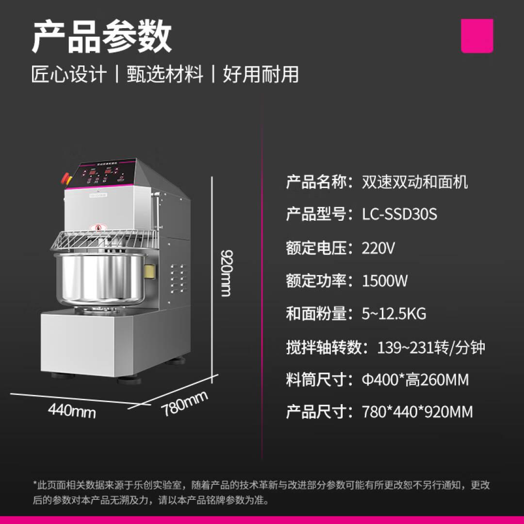 乐创(lecon)厨师机全自动 和面机商用厨房多功能双动双速揉面机电子数显定时款30L SSD30S