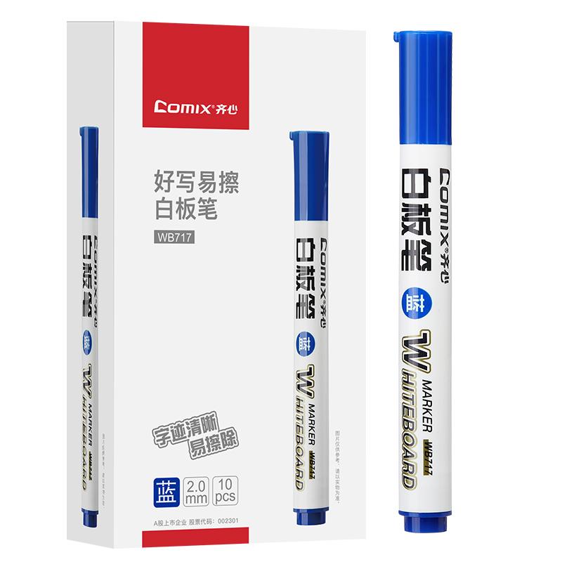 > 齐心 WB717 好写易檫白板笔 2.0mm 蓝 10个装