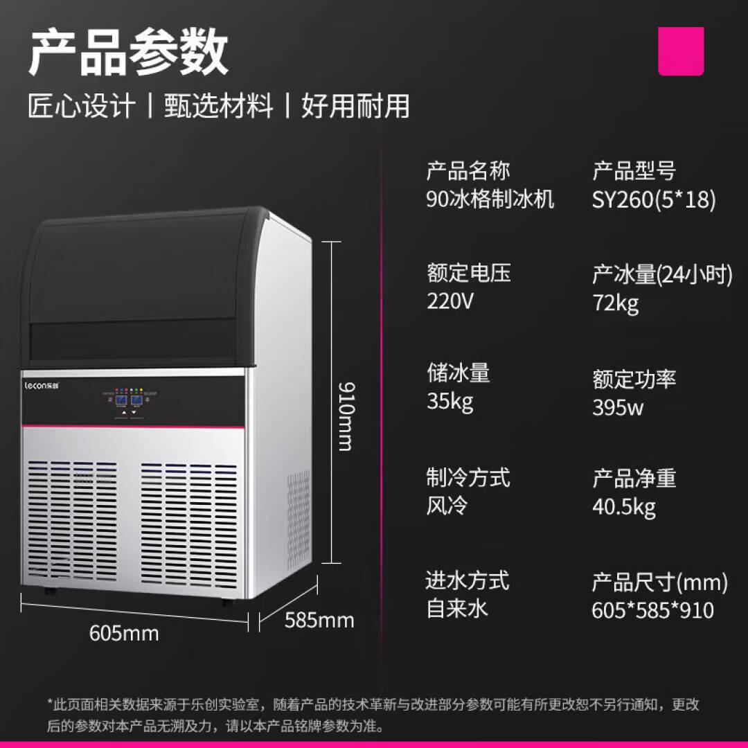 乐创(lecon)制冰机商用奶茶店全自动冰块机器酒吧台KTV方块冰 90冰格/日产72KG 自来水 SY260(5*18)