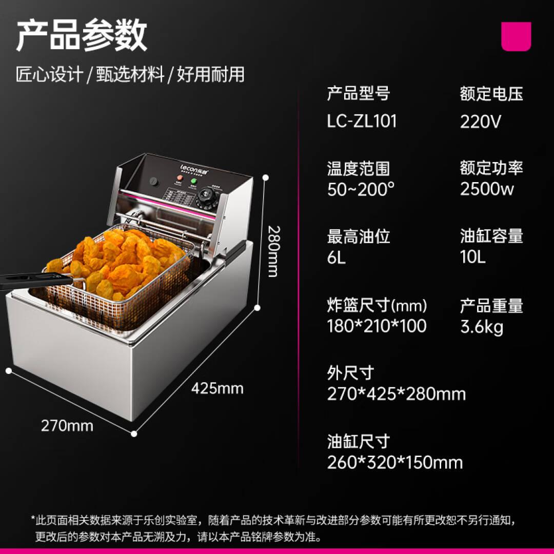 乐创(lecon)电炸炉商用油炸锅小吃炸鸡薯条油条炸串电炸锅 单缸单筛炸炉 10L LC-ZL101