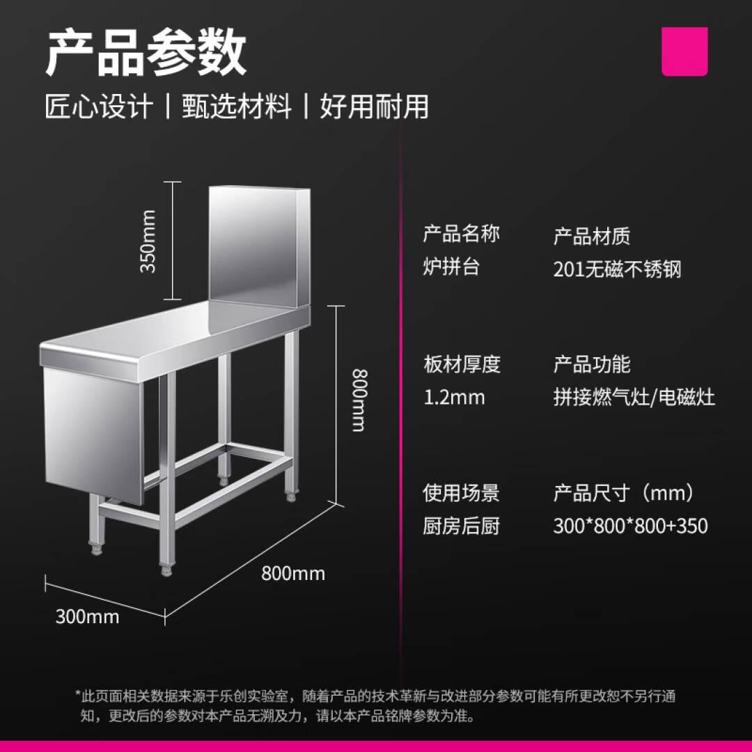 乐创(lecon)炉拼台 锅灶工程台面炉灶拼接台201不锈钢调料酱料台置物架子 300*800*800+350 LC-LPT02