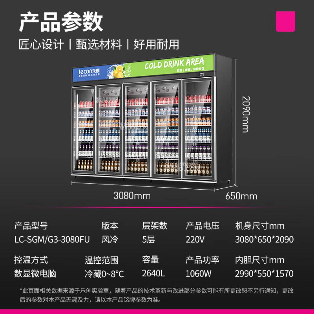 乐创(lecon)商用超市展示柜冷藏 便利店连锁专用饮料柜水果蔬菜啤酒柜五门LC-SGM/G3-3080FU