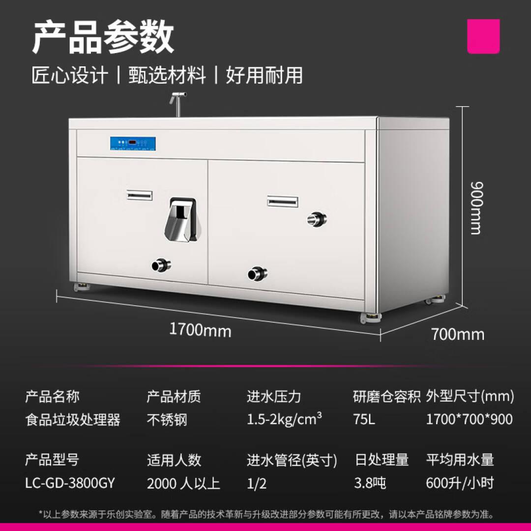 乐创 lecon 商用厨余垃圾处理器厨房家用食物粉碎机餐厨湿垃圾处理机 LC-J-BT3800GY【企业采购】