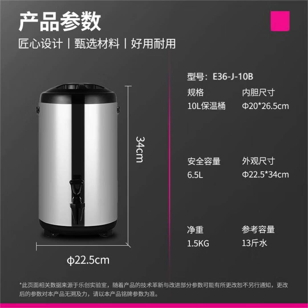 乐创(lecon)不锈钢奶茶保温桶商用 奶茶店果汁豆浆桶 凉茶店大容量凉茶饮料冷热桶 E36-J-10B