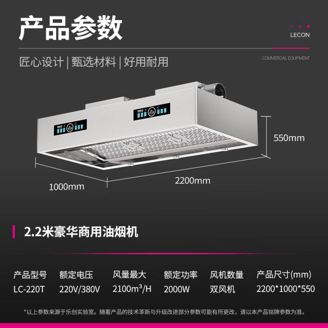 乐创(lecon)商用油烟机食堂饭店厨房自动大吸力油烟机不锈钢双头排烟 LC-220T【一价无忧】