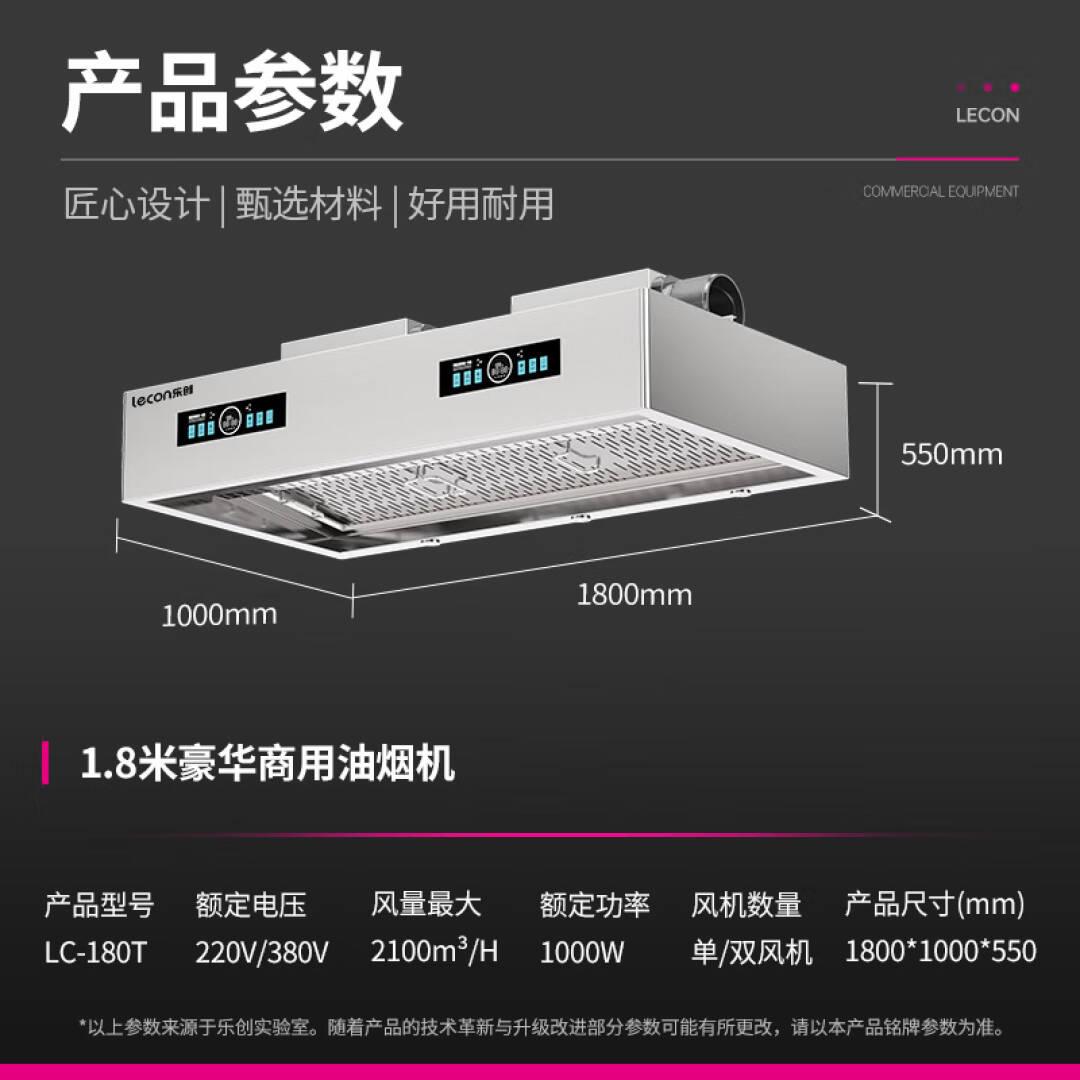 乐创(lecon)商用油烟机食堂饭店厨房自动大吸力油烟机不锈钢双头排烟 LC-180T