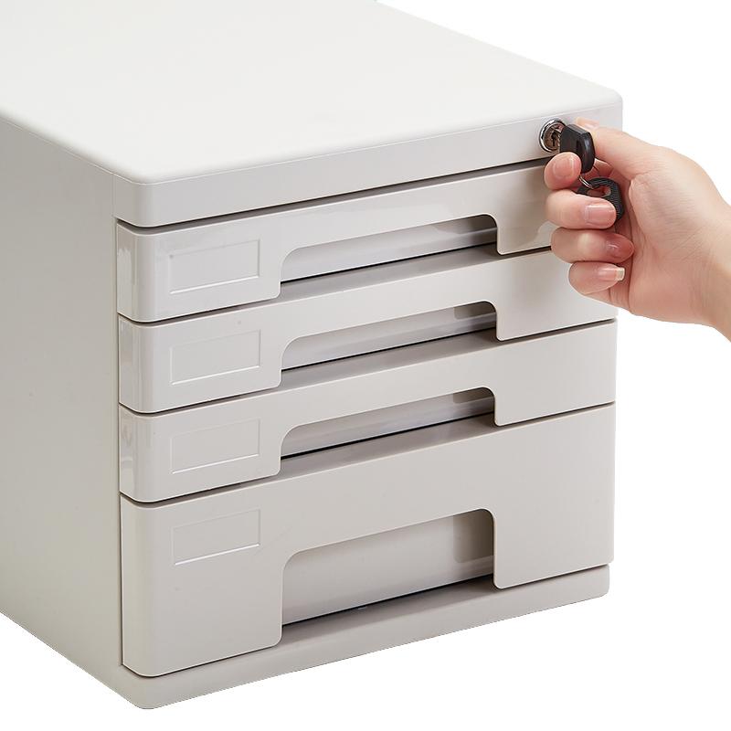 > 齐心 B2251 塑胶文件柜(四层带锁) 360*270*257mm 灰 单位:个