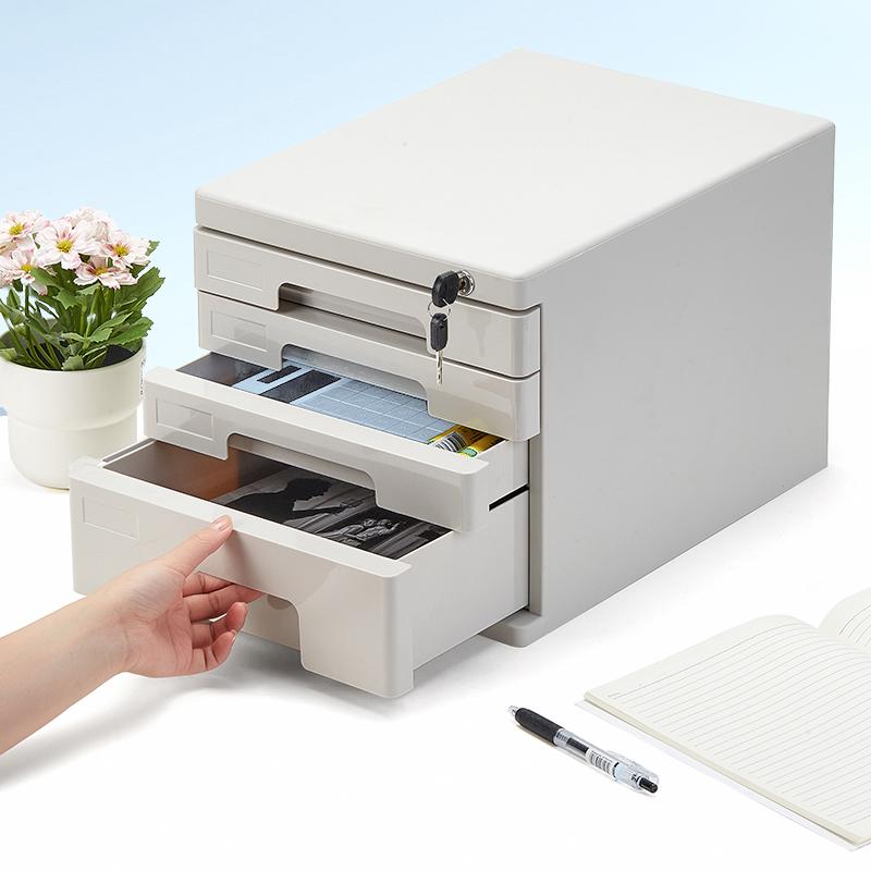 齐心 B2251 塑胶文件柜(四层带锁) 360*270*257mm 灰 单位:个