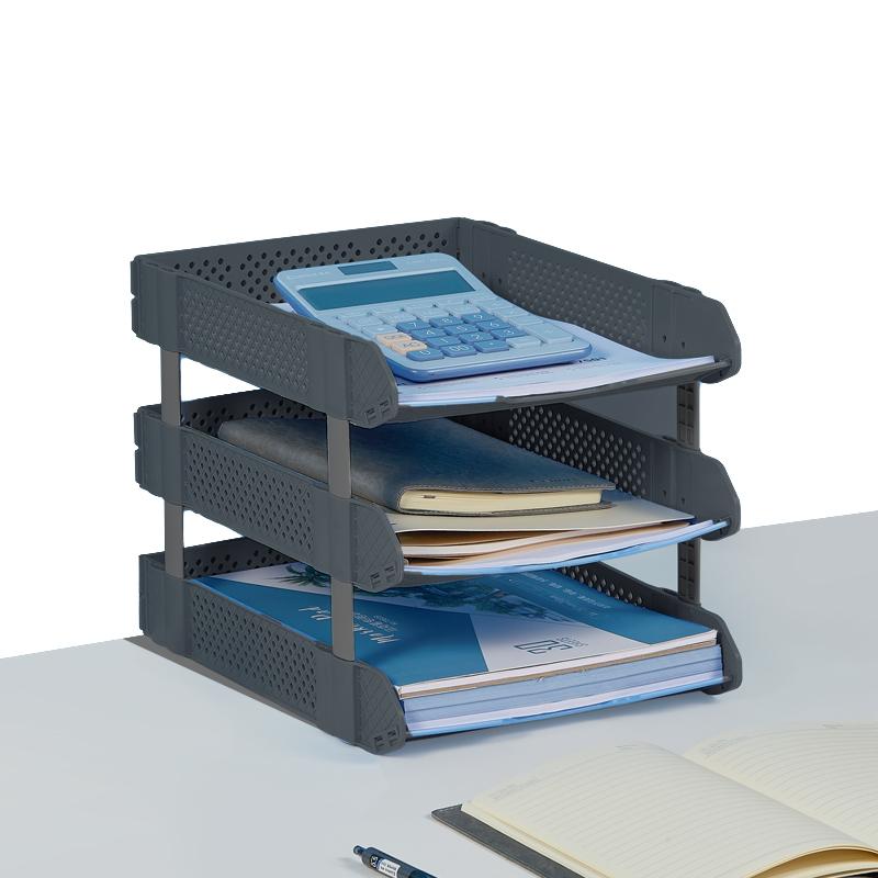 齐心 B2069 折叠文件盘 三层 深灰 单位:个
