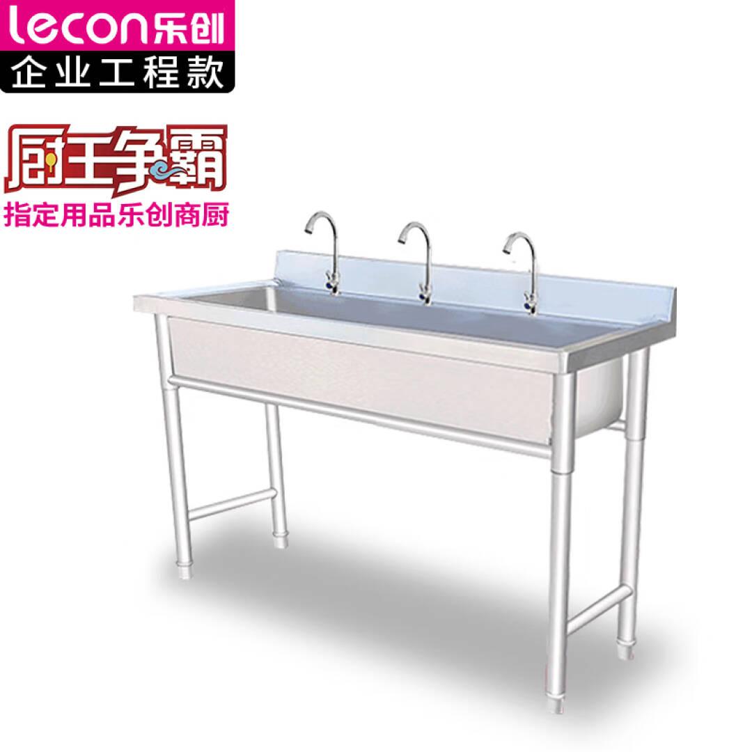 乐创(lecon)商用联排水池 304不锈钢单槽洗碗池1500*500*800mm 带3个单冷水龙头 LC-J-LPC1553【一价无忧】