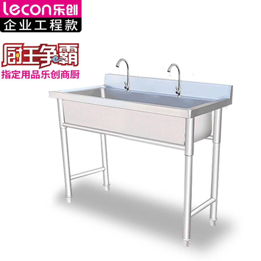 乐创(lecon)商用联排水池 304不锈钢单槽洗碗池1200*600*800mm 带2个单冷水龙头 LC-J-LPC1262【一价无忧】