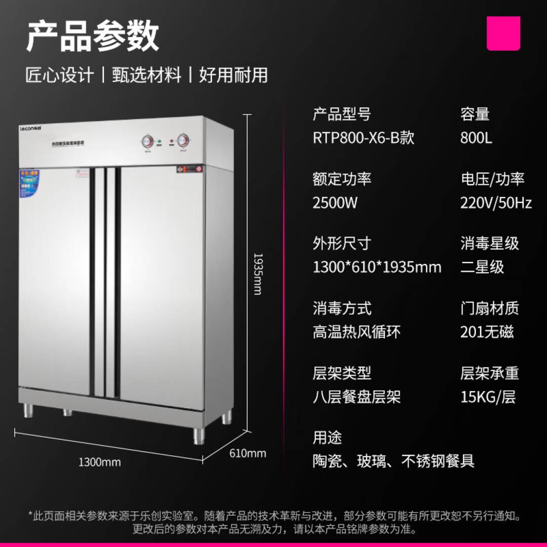 乐创(lecon)消毒柜商用立式双开门消毒柜高温热风循环餐具杯具厨具消毒碗柜 RTP800-X6-B款